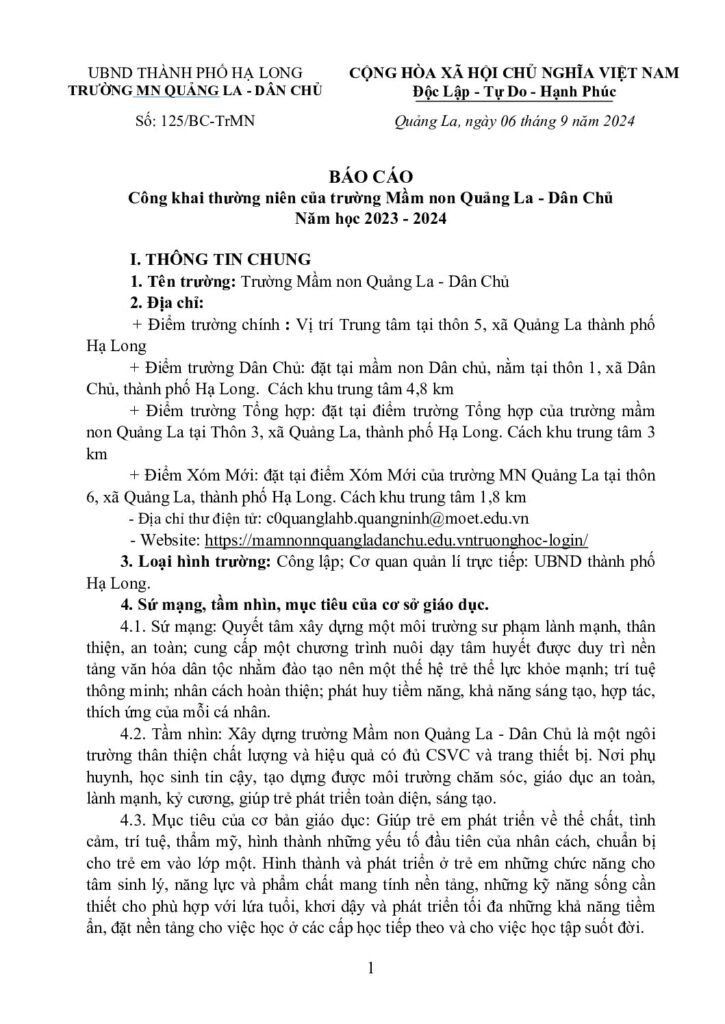 Báo cáo Công khai thường niên của trường Mầm non Quảng la – Dân Chủ